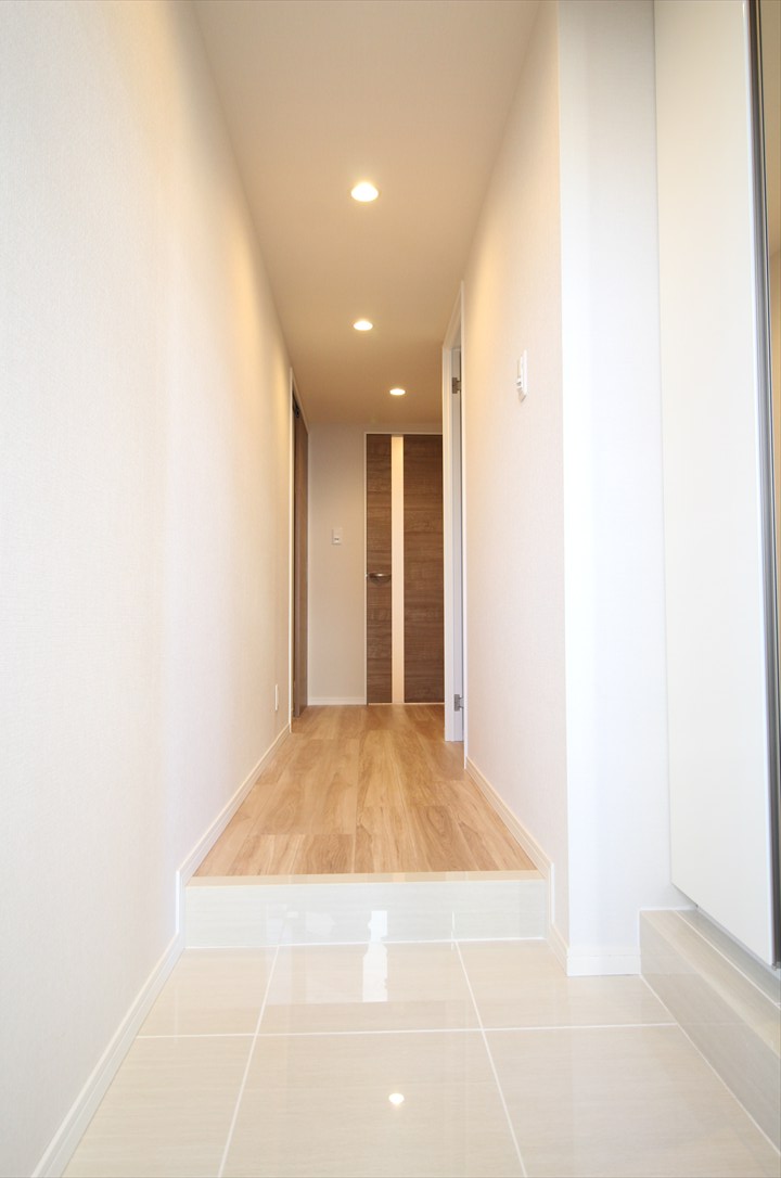 玄関収納新規交換、人感センサー取付、床タイル張替え