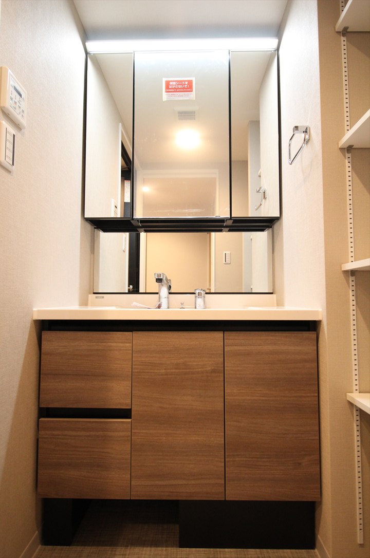 LIXIL製洗面化粧台交換、洗濯用防水パン交換