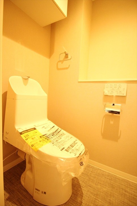 TOTO製一体型シャワートイレ交換、吊戸棚取付