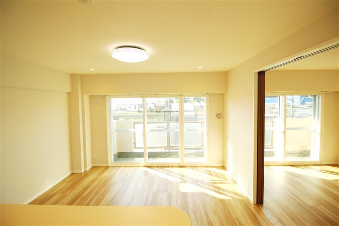 全窓インナーサッシ新設、フローリング貼替え、建具交換、壁・天井クロス張替え、LED照明器具取付